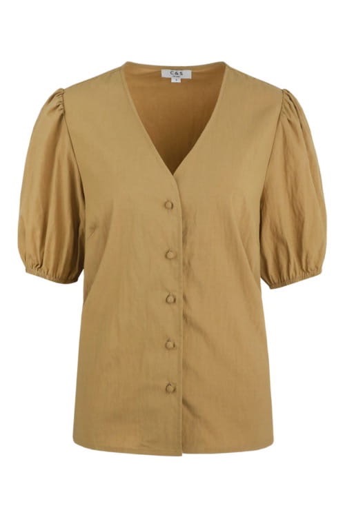 C&S dames blouse Eivissa, een mooie blouse in de kleur mustard olive.