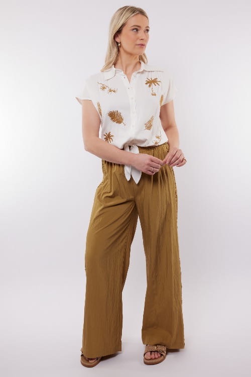 Dames blouse Portofino off-white, een mooie blouse met borduursel op het voorpand.