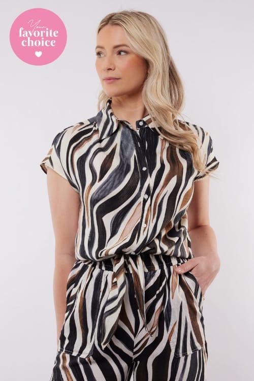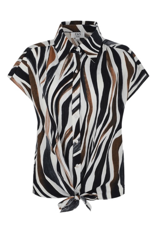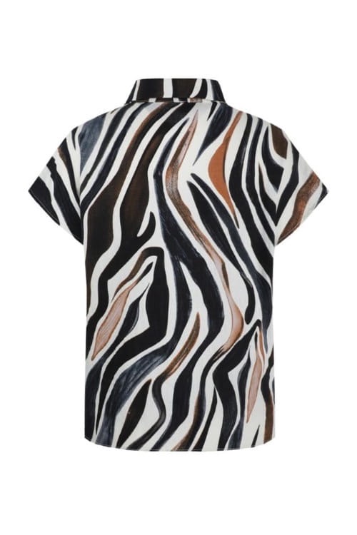 C&S dames blouse Tiger Eye, een super blouse met een all-over patroon in bruin, zwart en off-white.