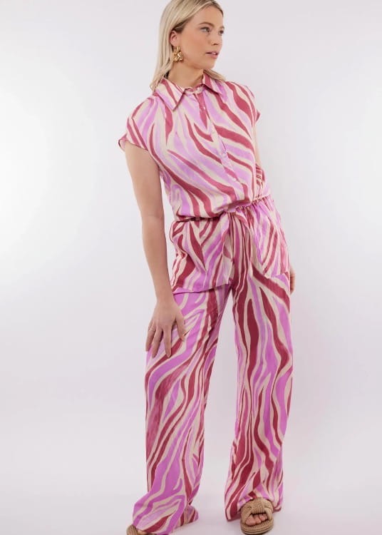 Dames broek Taurito roze, een mooie wideleg in de kleuren roze en off-white.