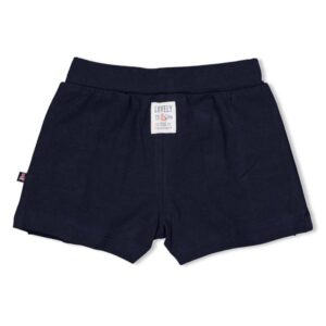 Feetje baby broekje 52100234 blauw, een geweldig leuke broekje in donkerblauw. Het baby broekje heeft een elastische tailleband met roze strikje en ruches.