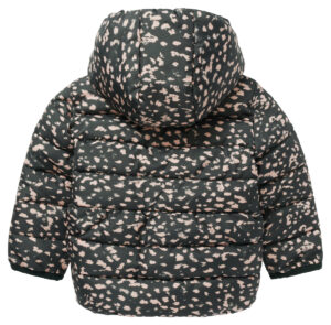 Noppies baby winterjas Augusta Phantom, een mooie gewatteerde jas in antraciet grijs met oud roze vlekken.