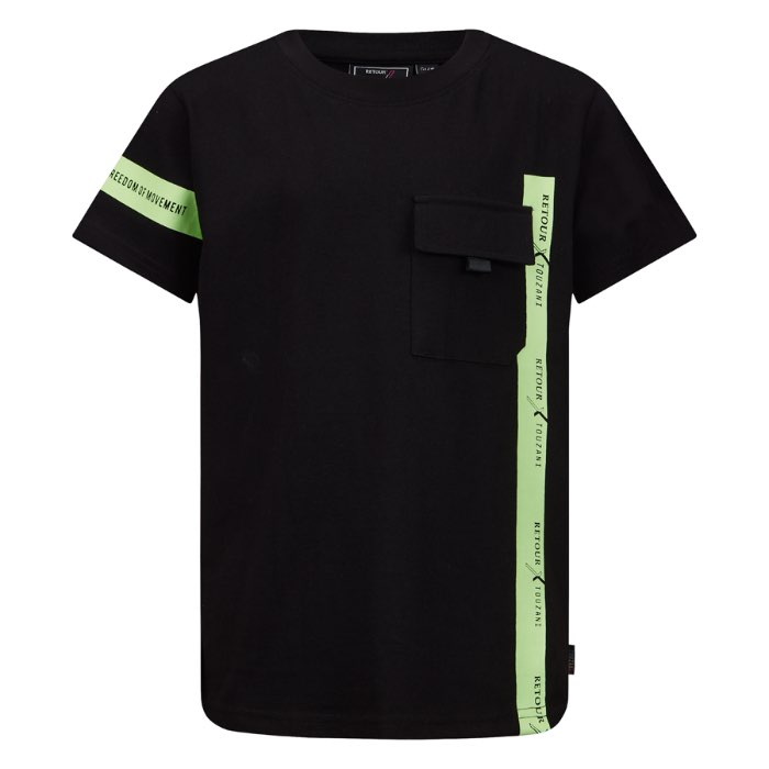 Het t-shirt heeft korte mouwen en een ronde hals. Verder groene accenten